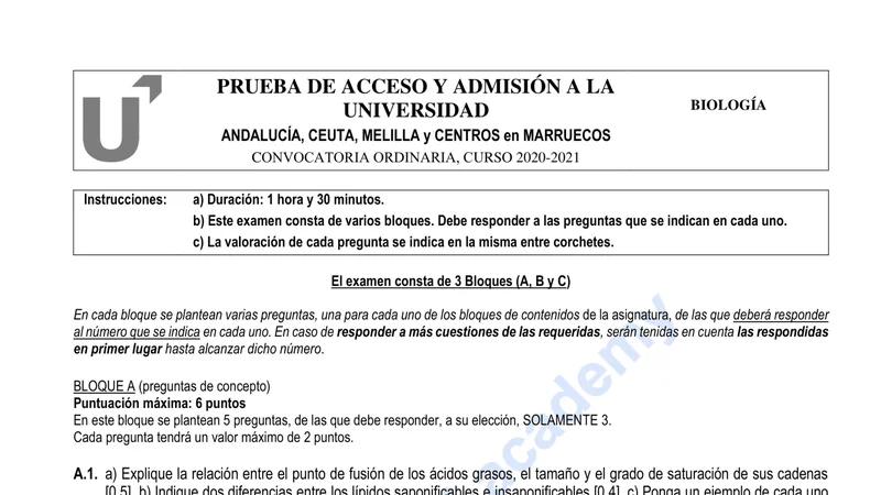 Reservar clase gratis →Examen de Biología selectividad Andalucía (Extraordinaria 2021)