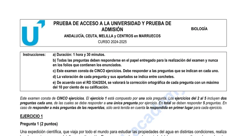 Reservar clase gratis →Examen de Biología selectividad Andalucía (Ordinaria 2025)