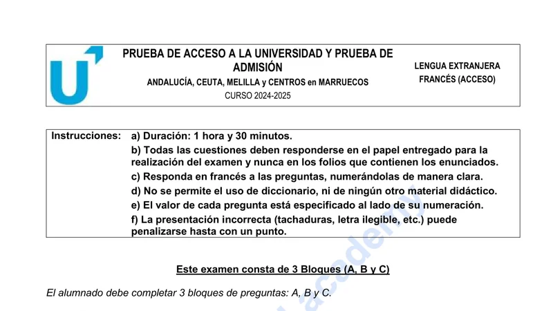 Examen PAU Francés selectividad Andalucía — Extraordinaria 2025
