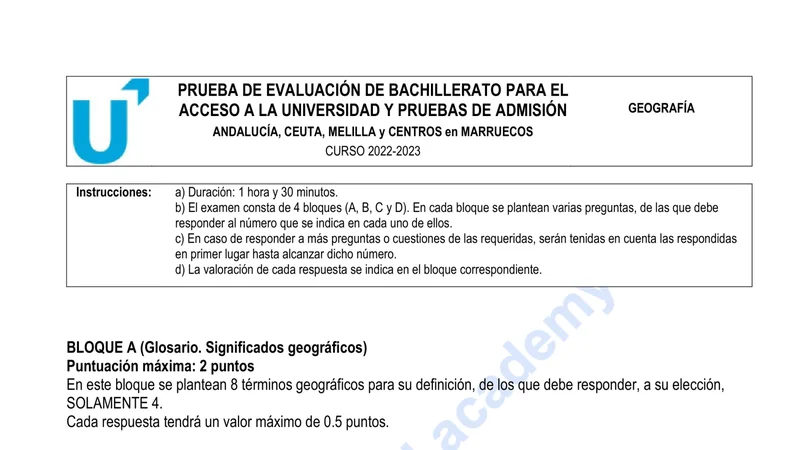 Reservar clase gratis →Examen de Geografía selectividad Andalucía (Extraordinaria 2023)