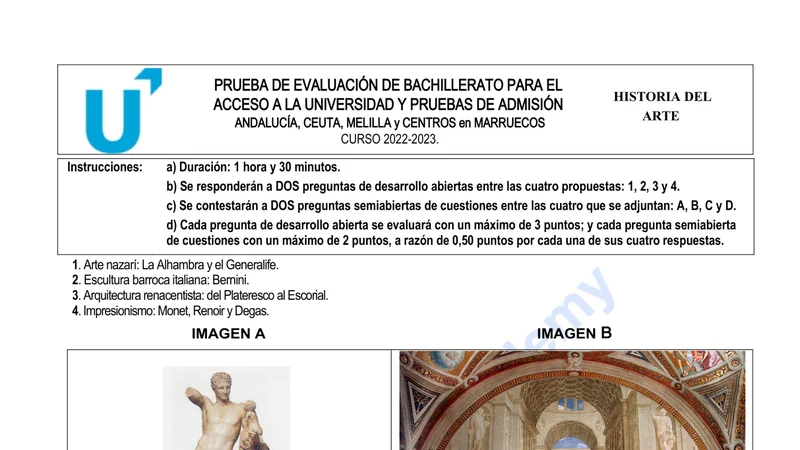 Reservar clase gratis →Examen de Historia del Arte selectividad Andalucía (Ordinaria 2023)