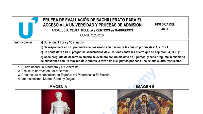 Examen PAU Historia del Arte selectividad Andalucía — Extraordinaria 2024