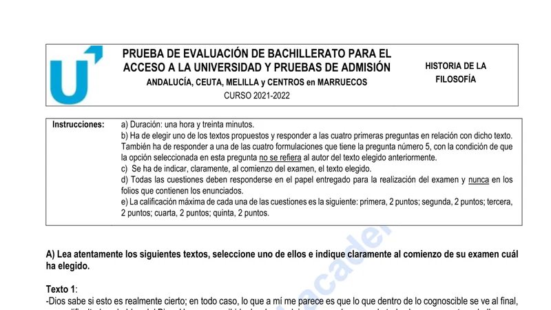 Examen de Historia de la Filosofía selectividad Andalucía — Ordinaria 2022