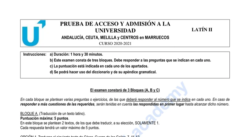 Examen PAU Latín II selectividad Andalucía — Extraordinaria 2021