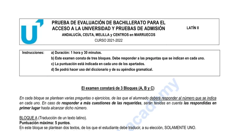 Reservar clase gratis →Examen de Latín II selectividad Andalucía (Extraordinaria 2022)