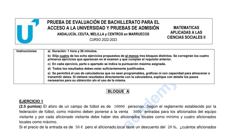 Reservar clase gratis →Examen de Matemáticas Aplicadas CCSS selectividad Andalucía (Extraordinaria 2023)