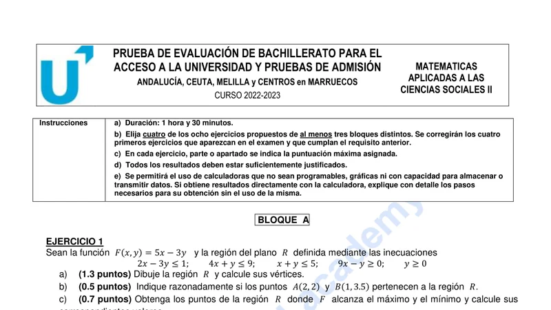 Reservar clase gratis →Examen de Matemáticas Aplicadas CCSS selectividad Andalucía (Ordinaria 2023)