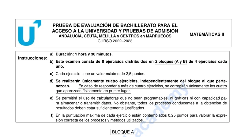 Reservar clase gratis →Examen de Matemáticas II selectividad Andalucía (Ordinaria 2023)