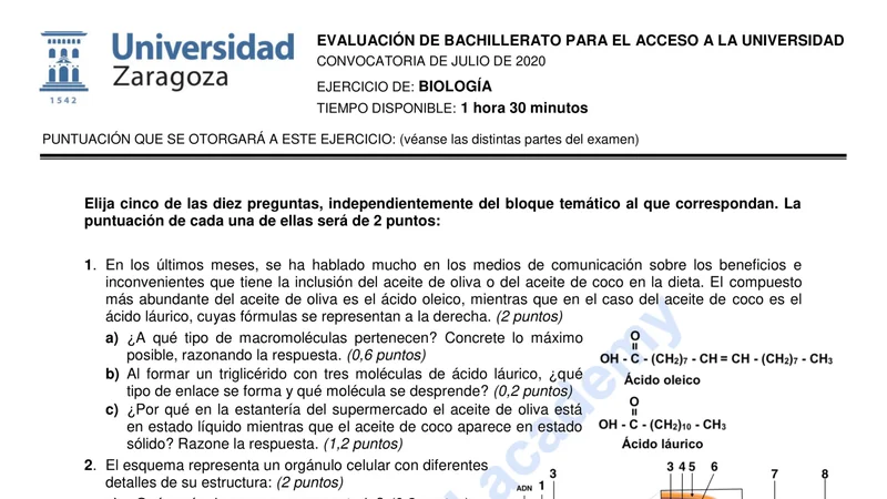 Examen de Biología selectividad Aragón — Ordinaria 2020