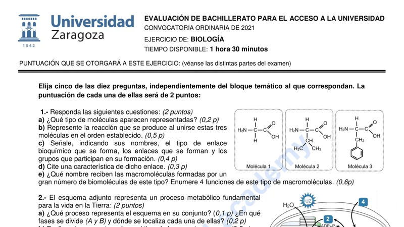 Reservar clase gratis →Examen de Biología selectividad Aragón (Ordinaria 2021)