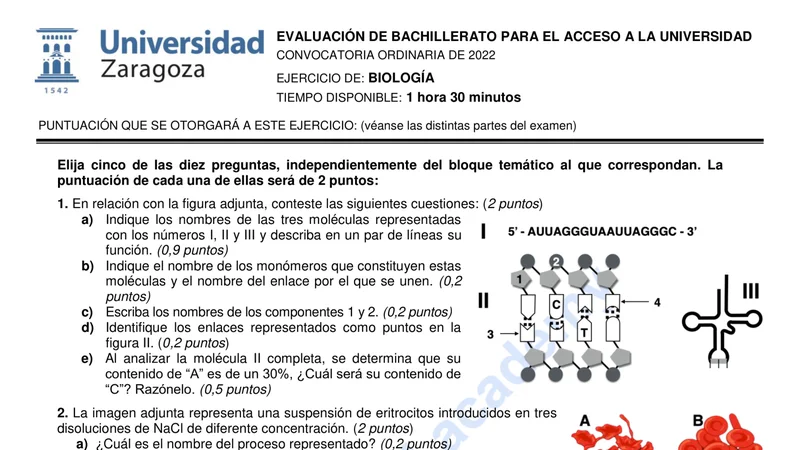 Reservar clase gratis →Examen de Biología selectividad Aragón (Ordinaria 2022)