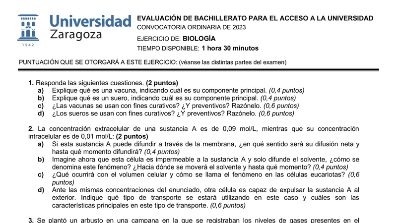 Reservar clase gratis →Examen de Biología selectividad Aragón (Ordinaria 2023)