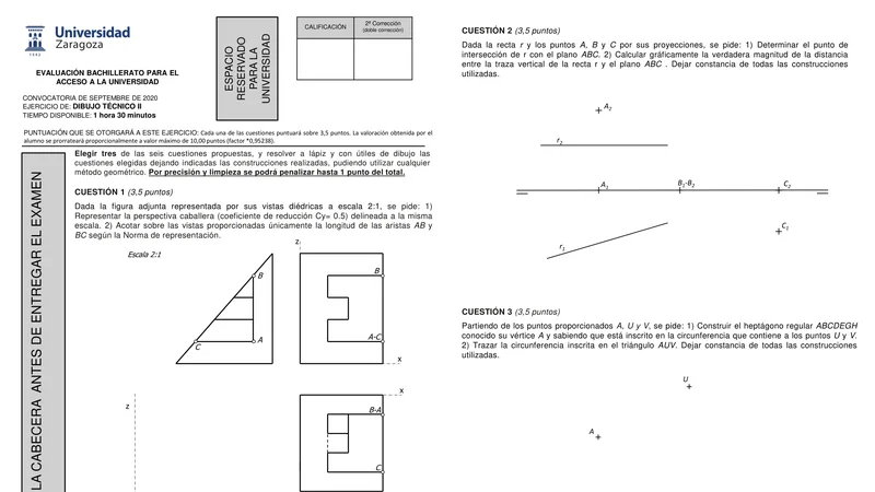 Reservar clase gratis →Examen de Dibujo Técnico II selectividad Aragón (Extraordinaria 2020)