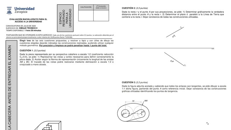 Examen de Dibujo Técnico II selectividad Aragón — Ordinaria 2020