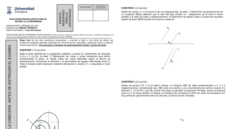 Reservar clase gratis →Examen de Dibujo Técnico II selectividad Aragón (Ordinaria 2021)