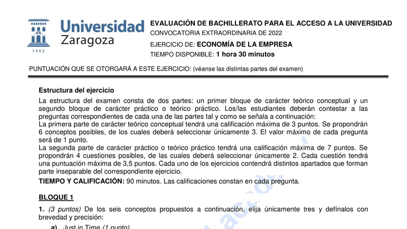 Reservar clase gratis →Examen de Economía de la Empresa selectividad Aragón (Extraordinaria 2022)