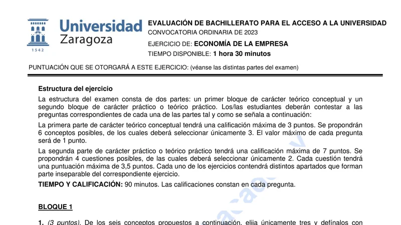 Reservar clase gratis →Examen de Economía de la Empresa selectividad Aragón (Ordinaria 2023)