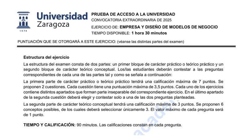 Reservar clase gratis →Examen de Economía selectividad Aragón (Extraordinaria 2025)