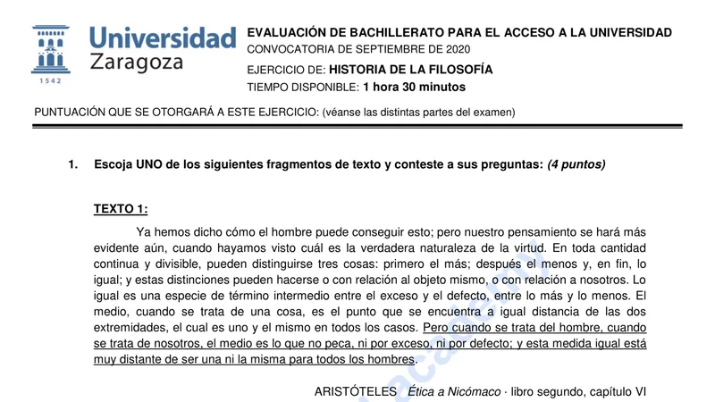 Examen de Historia de la Filosofía selectividad Aragón — Extraordinaria 2020