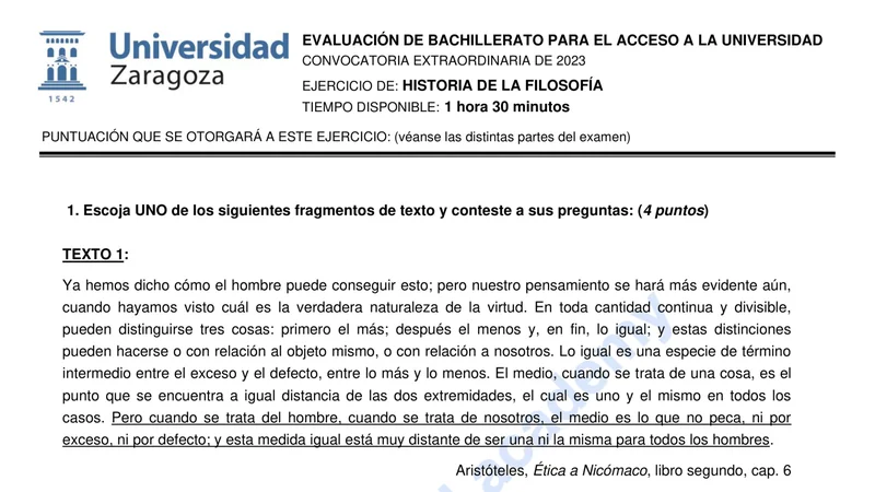 Examen de Historia de la Filosofía selectividad Aragón — Extraordinaria 2023