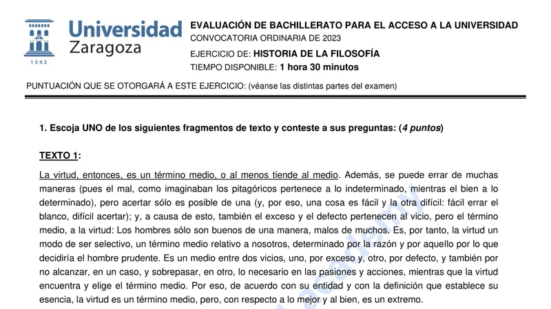 Reservar clase gratis →Examen de Historia de la Filosofía selectividad Aragón (Ordinaria 2023)