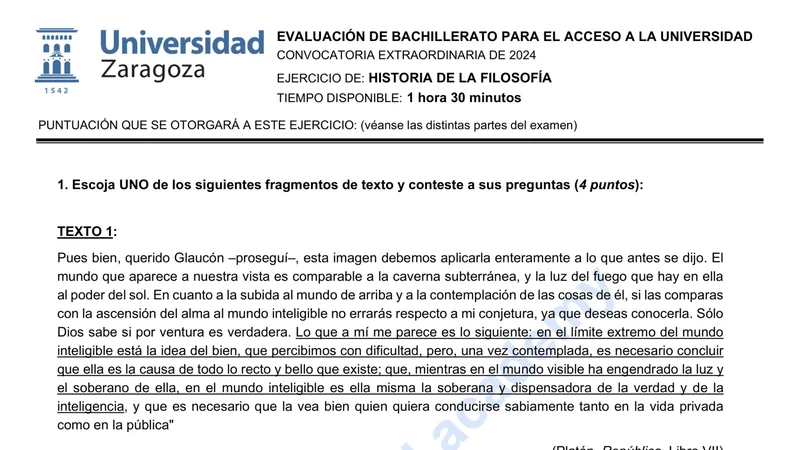 Examen de Historia de la Filosofía selectividad Aragón (Extraordinaria 2024)