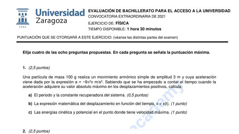Examen de Física selectividad Aragón — Extraordinaria 2021