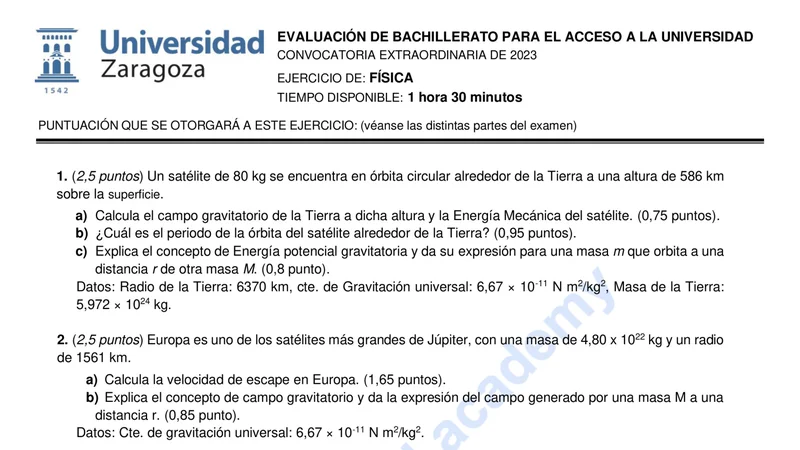 Examen de Física selectividad Aragón — Extraordinaria 2023