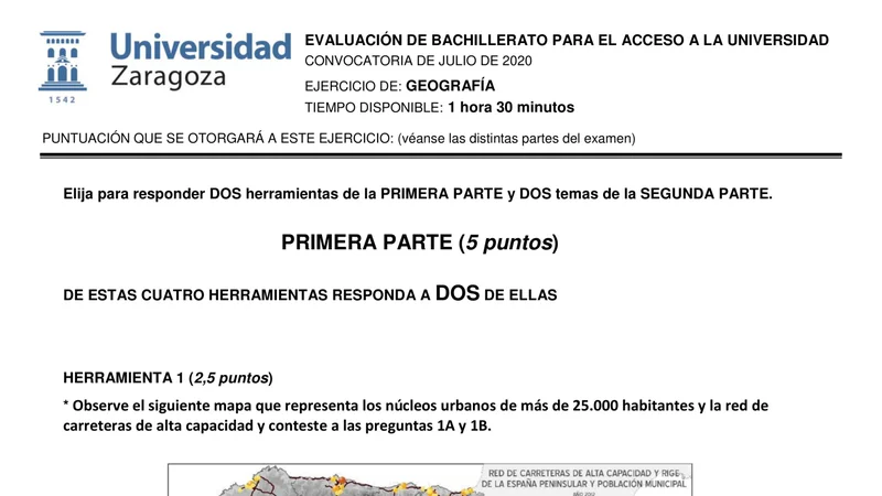 Examen PAU Geografía selectividad Aragón — Ordinaria 2020
