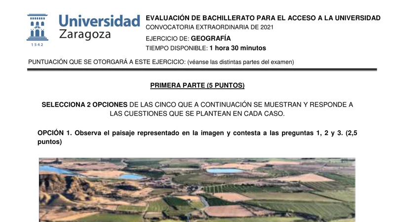 Examen PAU Geografía selectividad Aragón — Extraordinaria 2021