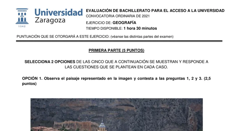 Reservar clase gratis →Examen de Geografía selectividad Aragón (Ordinaria 2021)
