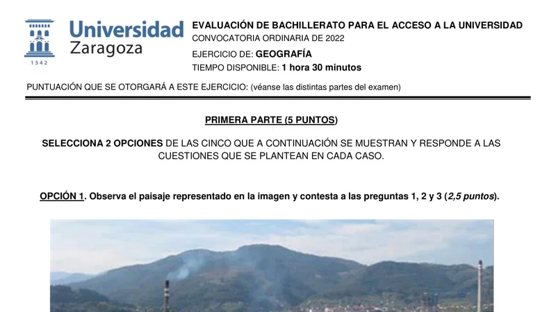 Examen PAU Geografía selectividad Aragón — Ordinaria 2022