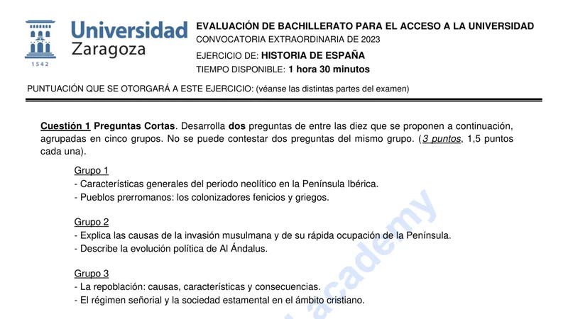 Reservar clase gratis →Examen de Historia de España selectividad Aragón (Extraordinaria 2023)