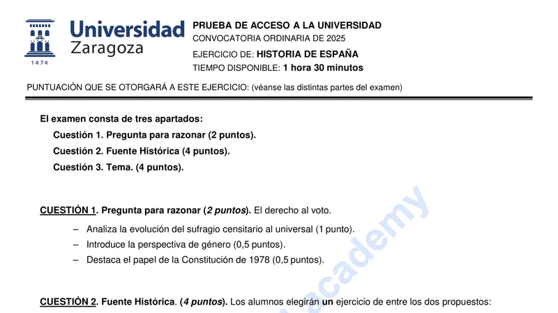 Reservar clase gratis →Examen de Historia de España selectividad Aragón (Ordinaria 2025)