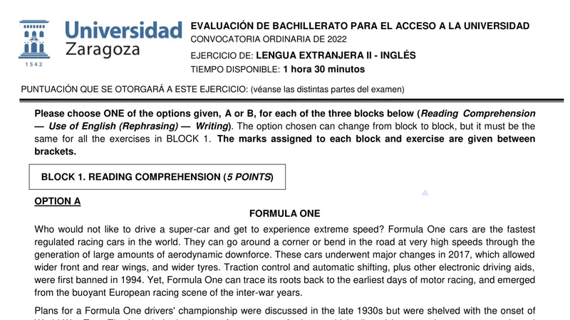 Examen de Inglés selectividad Aragón — Ordinaria 2022