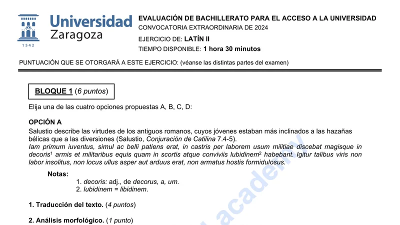 Examen PAU Latín II selectividad Aragón — Extraordinaria 2024