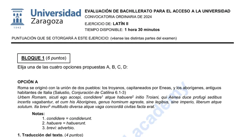 Reservar clase gratis →Examen de Latín II selectividad Aragón (Ordinaria 2024)