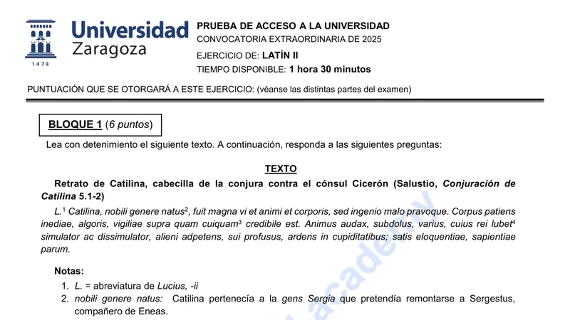 Reservar clase gratis →Examen de Latín II selectividad Aragón (Extraordinaria 2025)