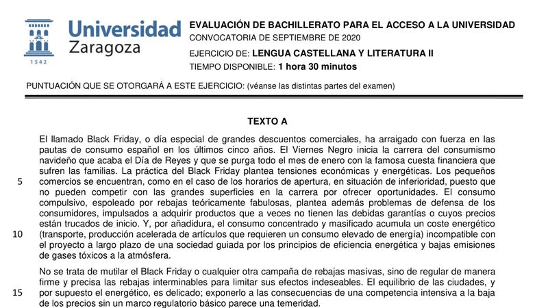 Examen de Lengua Castellana y Literatura selectividad Aragón — Extraordinaria 2020