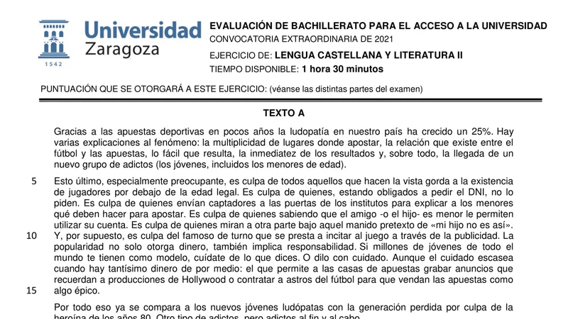Examen PAU Lengua Castellana selectividad Aragón — Extraordinaria 2021