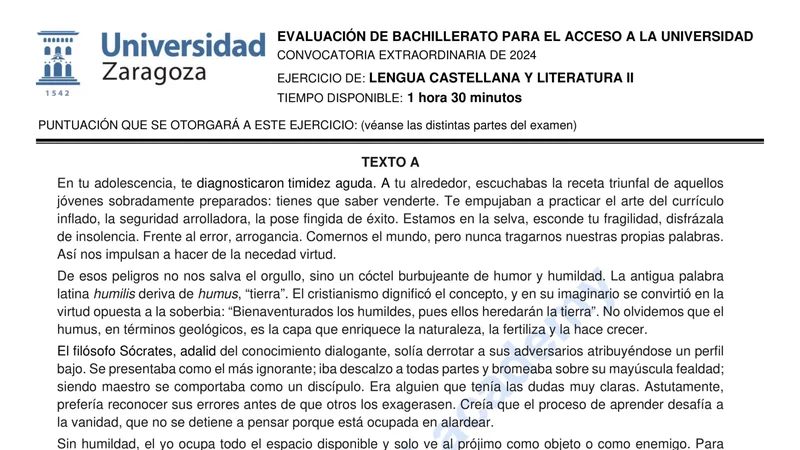Examen de Lengua Castellana selectividad Aragón — Extraordinaria 2024