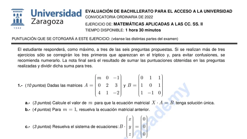 Reservar clase gratis →Examen de Matemáticas Aplicadas CCSS selectividad Aragón (Ordinaria 2022)