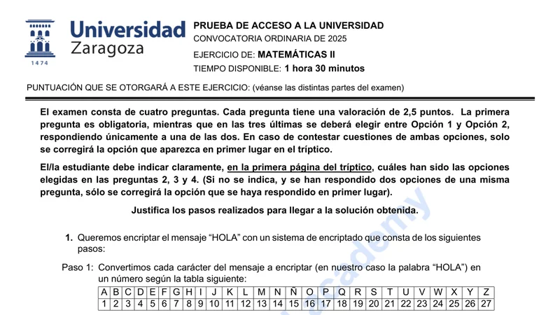 Reservar clase gratis →Examen de Matemáticas II selectividad Aragón (Ordinaria 2025)