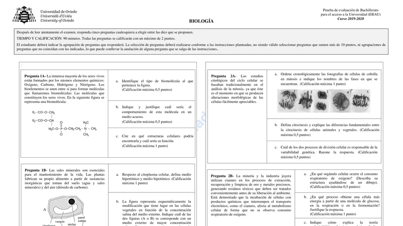 Reservar clase gratis →Examen de Biología selectividad Asturias (Extraordinaria 2020)