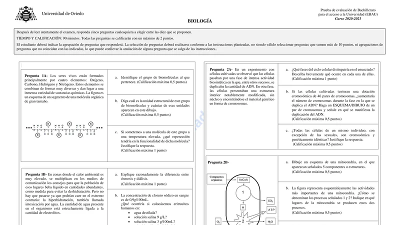 Reservar clase gratis →Examen de Biología selectividad Asturias (Extraordinaria 2021)