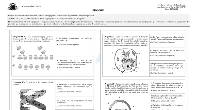 Reservar clase gratis →Examen de Biología selectividad Asturias (Ordinaria 2021)