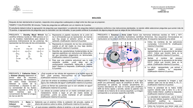 Reservar clase gratis →Examen de Biología selectividad Asturias (Extraordinaria 2022)
