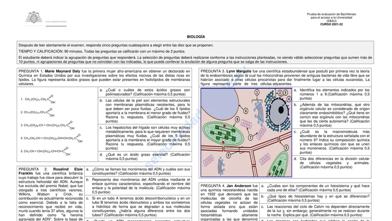 Reservar clase gratis →Examen de Biología selectividad Asturias (Ordinaria 2022)
