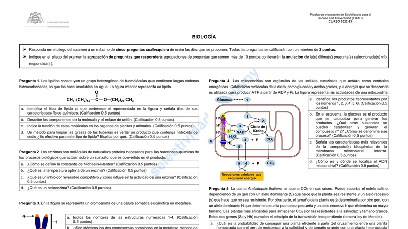 Reservar clase gratis →Examen de Biología selectividad Asturias (Extraordinaria 2023)