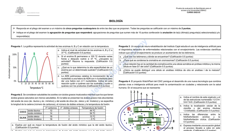 Reservar clase gratis →Examen de Biología selectividad Asturias (Ordinaria 2023)
